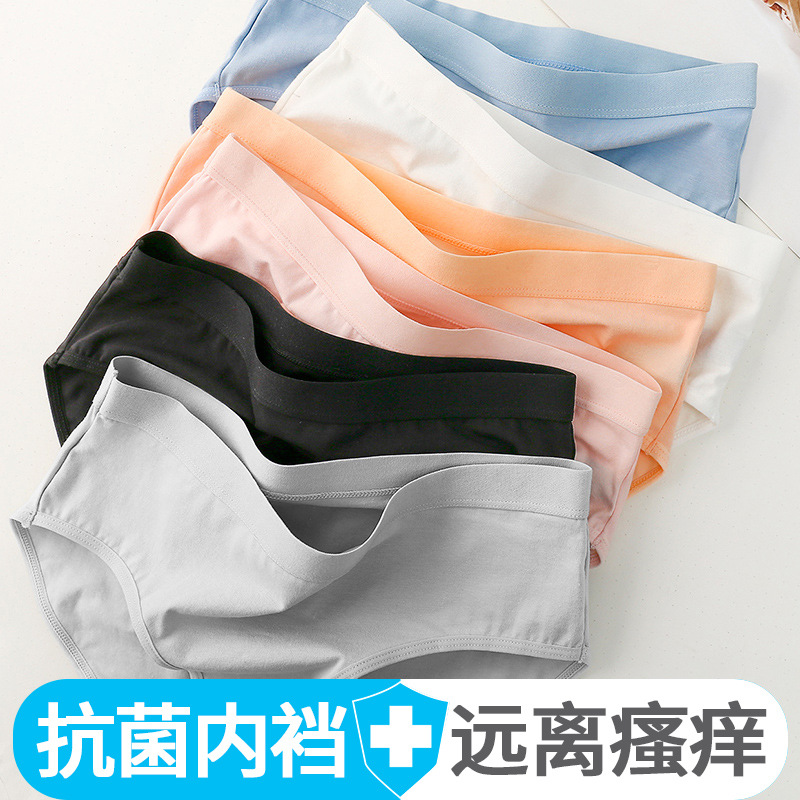 100%纯棉女士三角内裤中低腰全棉质面料裤头抗菌白色纯色女生底裤
