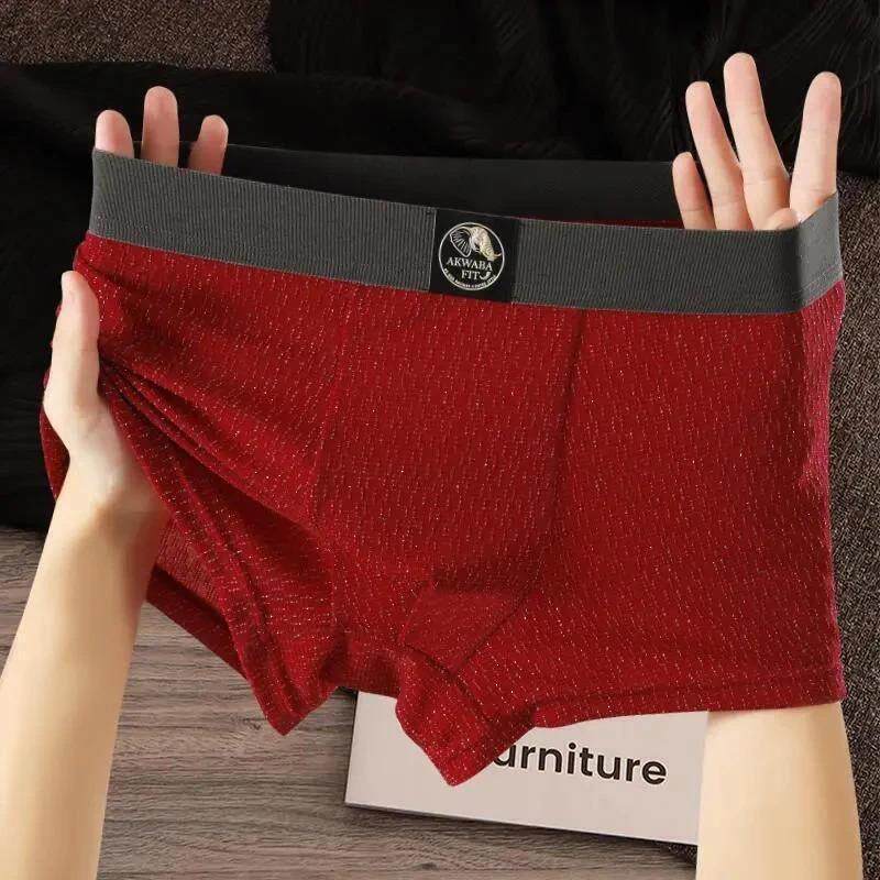 猫人男士内裤本命年冰丝夏季四角裤红色男过年平角短裤头马年结婚