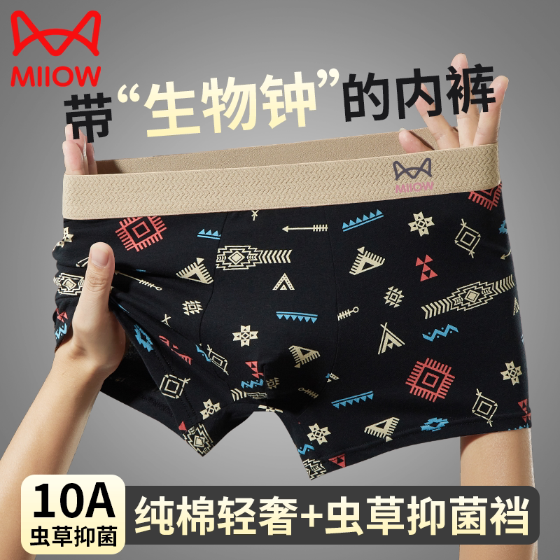 猫人焕新标纯棉男士内裤10A抗菌抑菌高弹运动四角裤吸湿排汗透气
