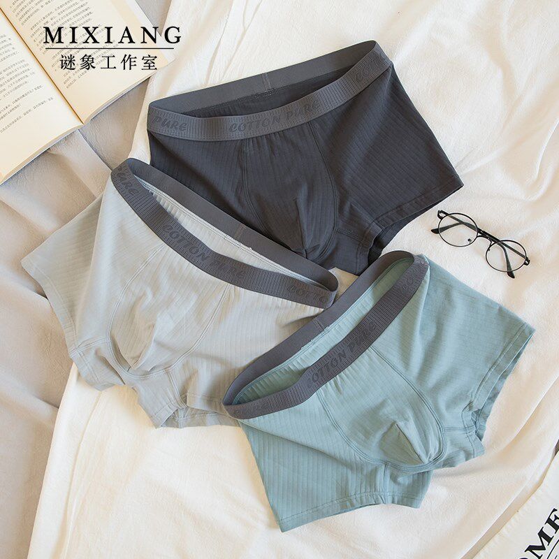 谜象男士纯棉内裤三条裤头个性简约平角裤衩夏季全棉舒适中腰短裤