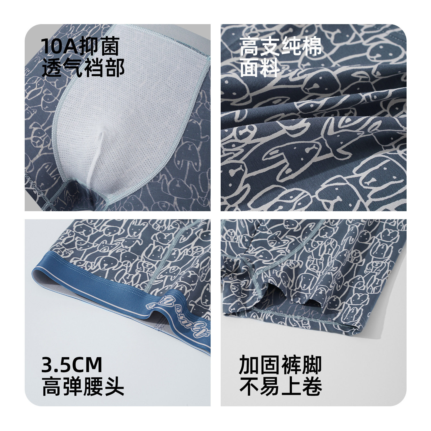 中山男士内裤无痕中腰平角裤纯色抗菌底档四角裤青年透气