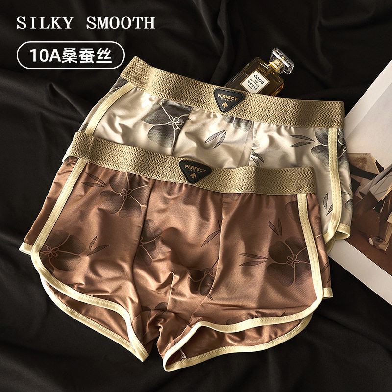 凯丽高级缎面轻奢内裤男10A级抑菌桑蚕丝平角裤亲肤中腰四角短a7