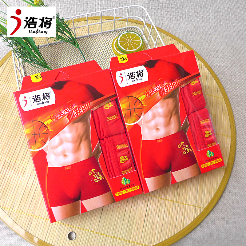男士内裤大红鸿运本命年烫金恭喜发财净面弹力人棉平脚浩将短内裤