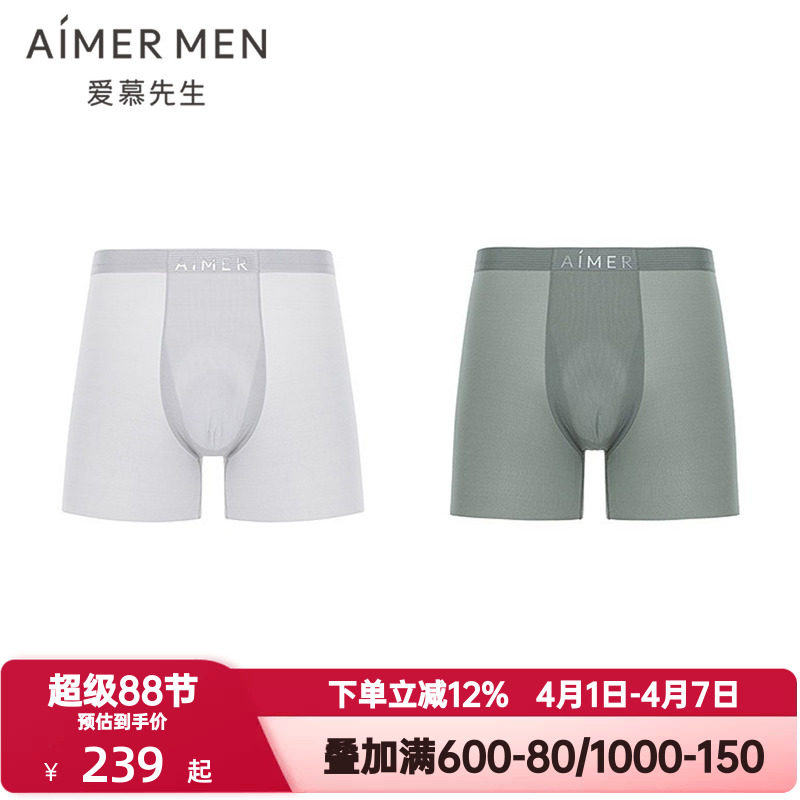 2条装 爱慕先生夏季冰动系列内裤男士轻薄无痕装腰平角裤NS23N321