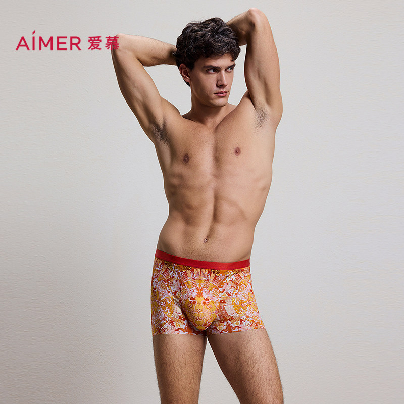 爱慕先生正品USPACE轻薄速干印花无痕男士装腰平角内裤头NS23M716