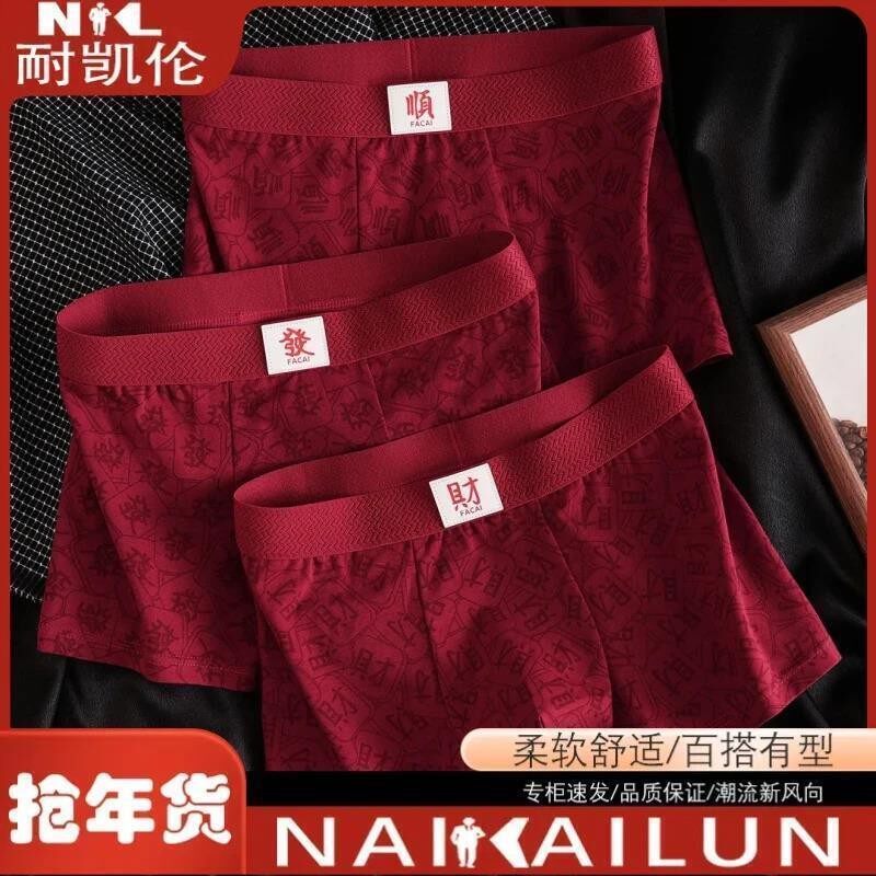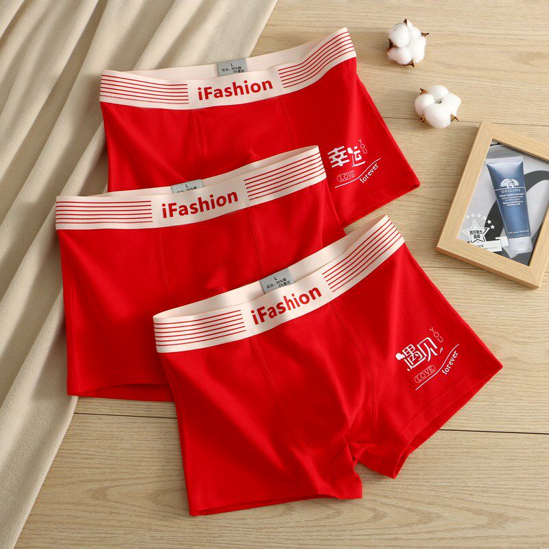 本命年男士内裤男酒红棉透气平角裤男生新年礼物结婚喜庆四角裤