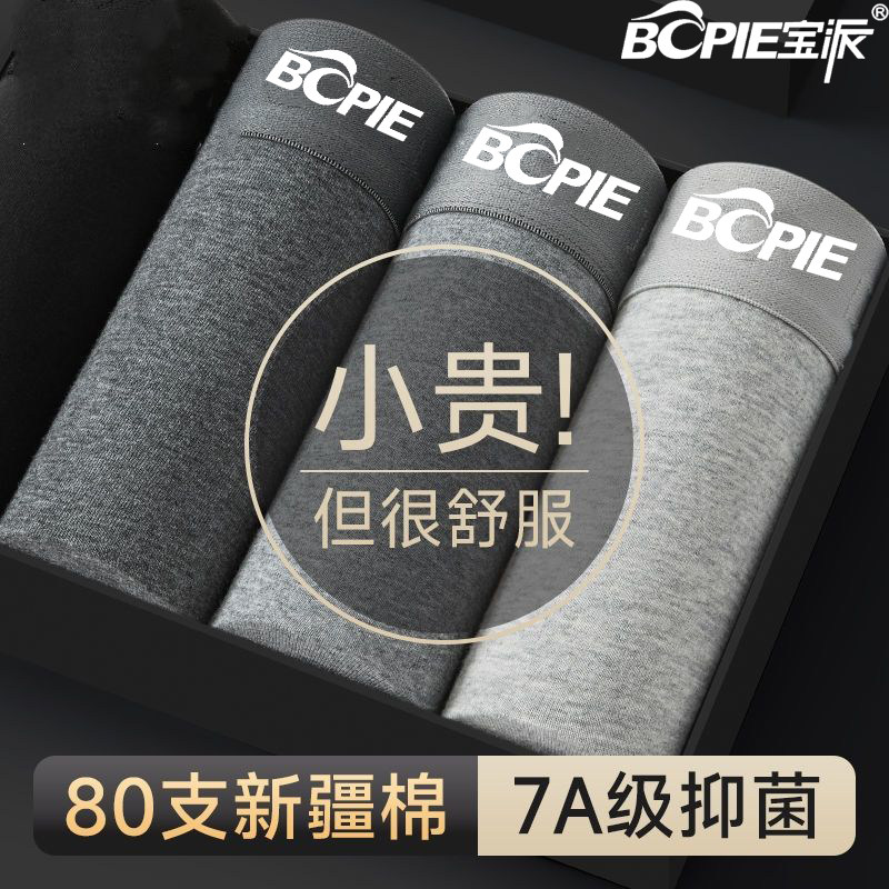 宝派男士内裤纯棉抗菌裆中腰抑菌男式短裤头男生四角裤衩大码高档