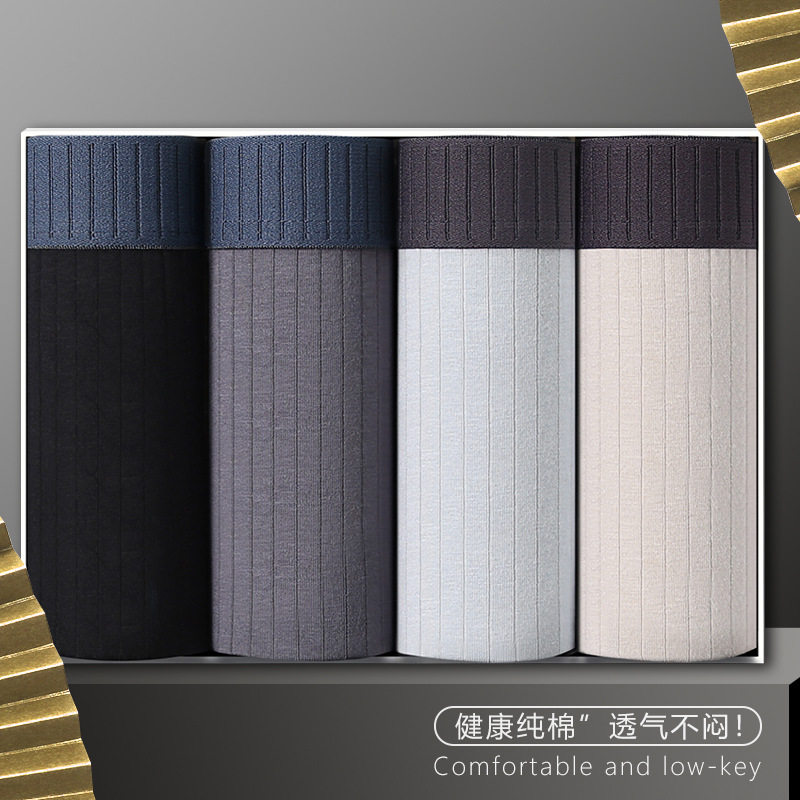 肆禧仟茴四条装男士内裤男生棉质四角裤透气运动四角裤潮流短裤头