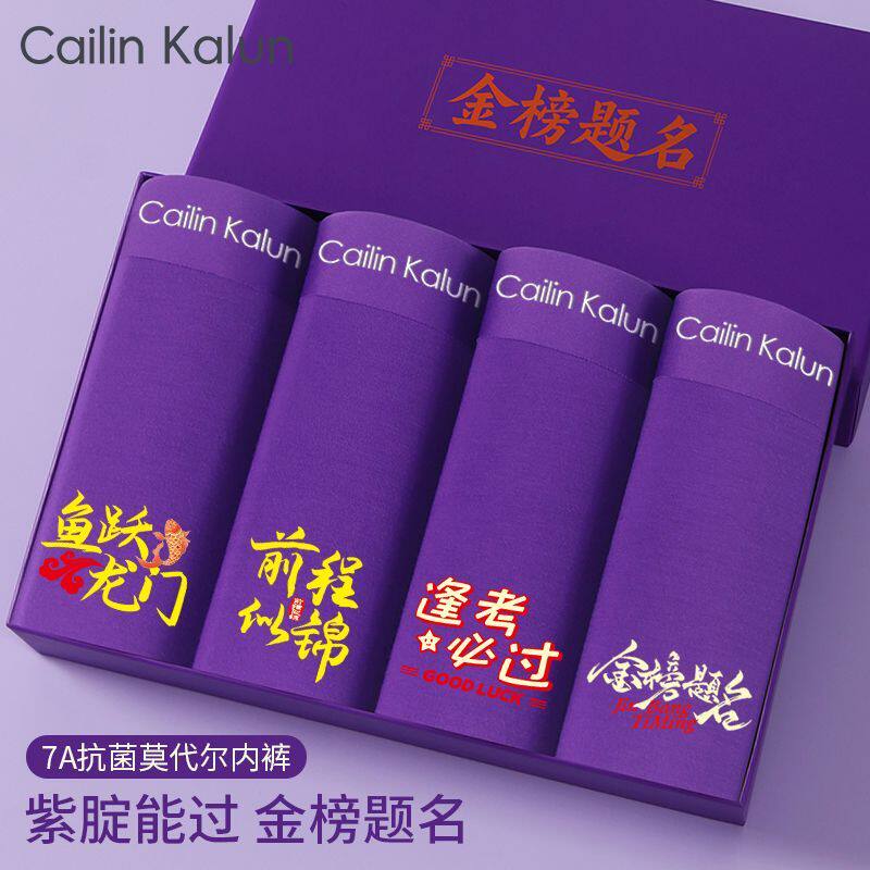 男士内裤7A抑菌中高考逢考必过紫腚都对考试状元袜子紫色短裤套装