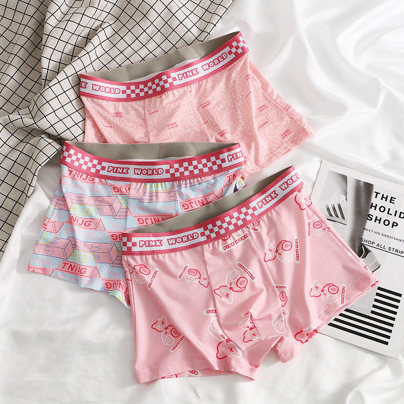 新款粉色冰丝男士内裤透气舒适四角裤男款平角裤高档裤衩潮流裤头