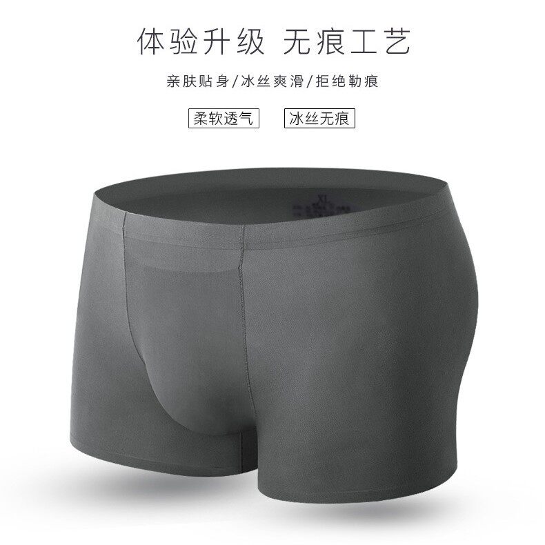 冰丝男士内裤平角裤青年一片式夏季薄款性感透气大码裤衩四角裤头