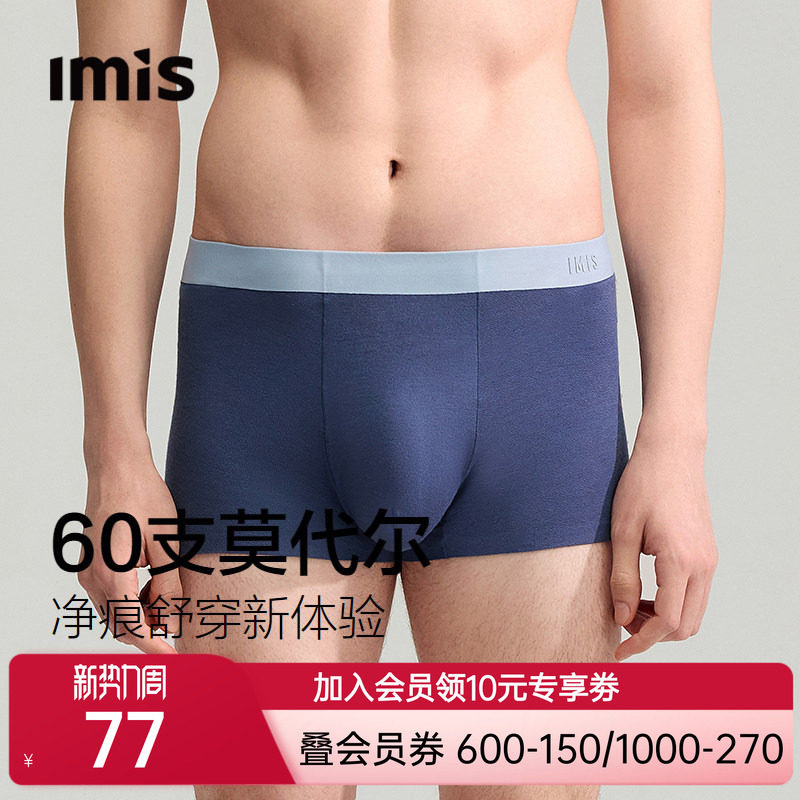 爱美丽60支莫代尔网眼男7A抗菌四角内裤提花撞色透气中腰平角短裤
