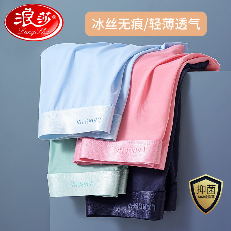 浪莎冰丝内裤男士夏季薄款无痕四角裤抑菌档透气盒装平角短裤衩潮