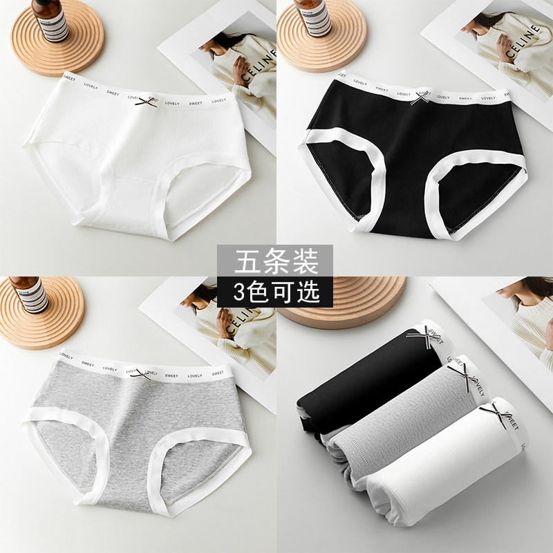 极简黑白灰运动风中腰内裤女棉质抑菌裆透气亲肤少女学生三角裤