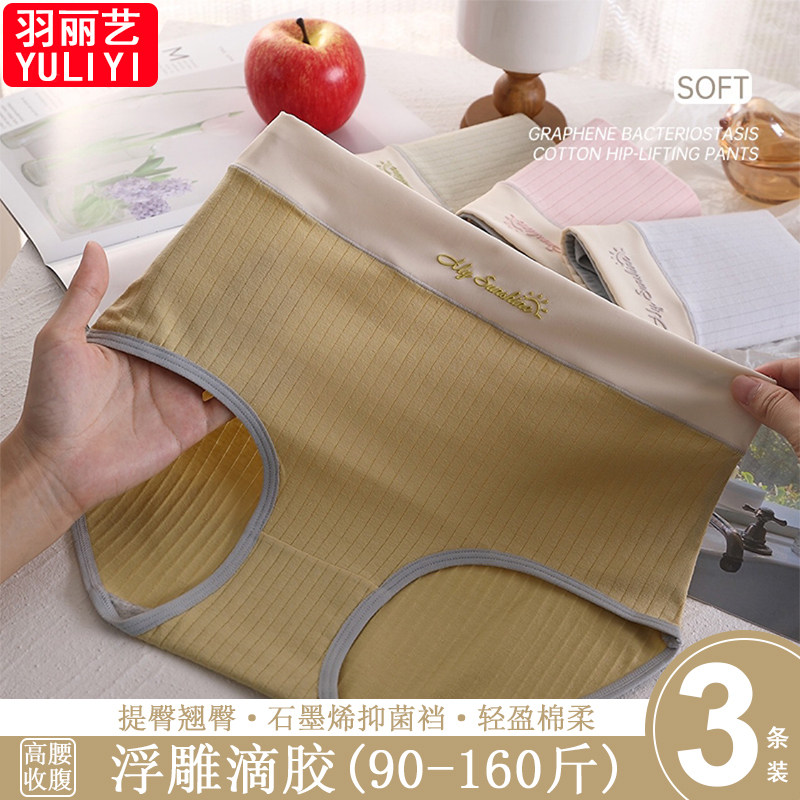 新款中腰纯棉浮雕滴胶图案内裤女高腰收腹轻盈无感棉柔感三角裤
