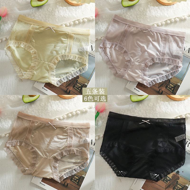新款日系蕾丝花边网纱内裤女中腰底裆舒适柔软无痕透气三角裤衩女