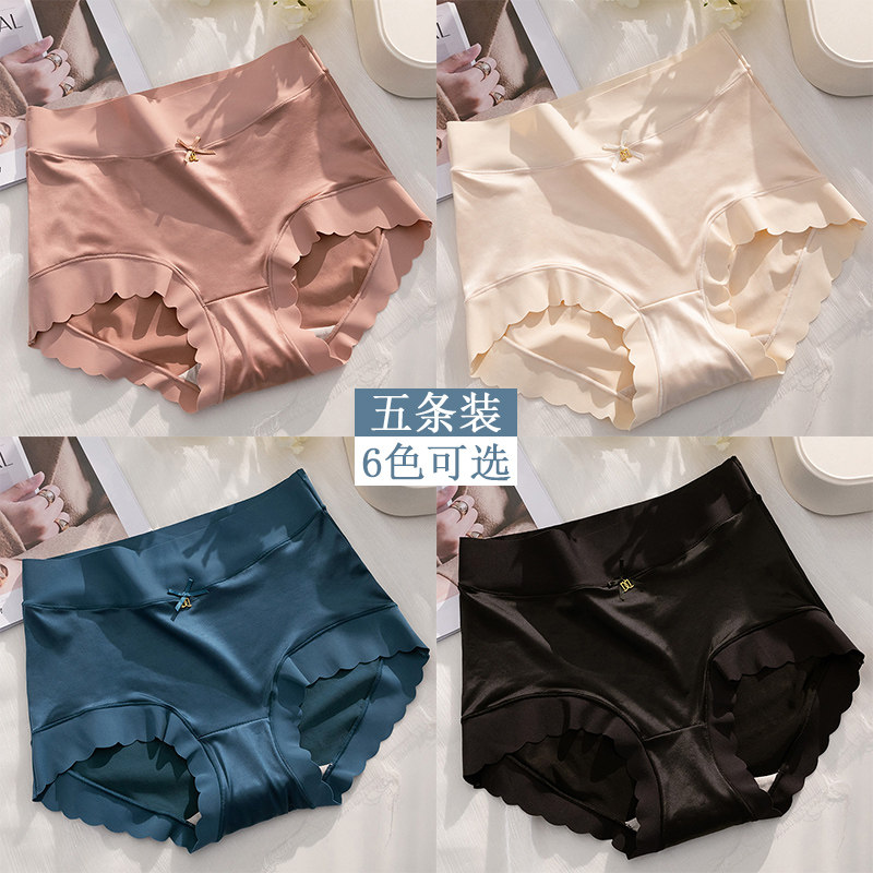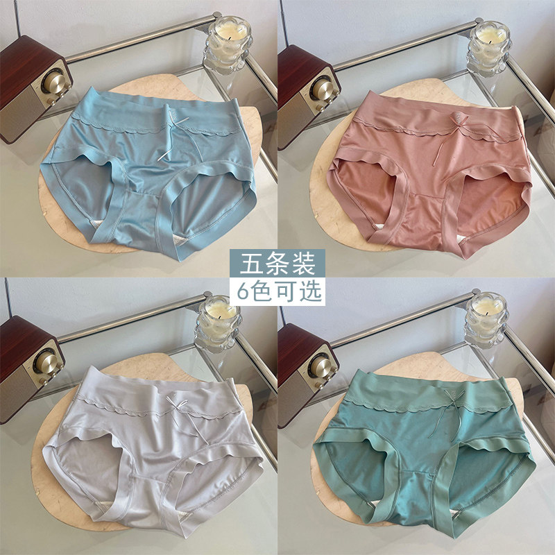 甜美蝴蝶结点缀缎面冰丝高腰内裤女轻柔舒适透气软糯细腻三角裤