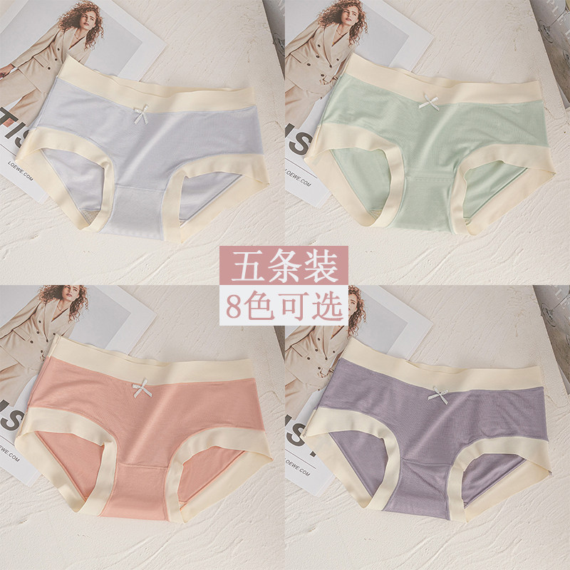 蝴蝶结撞色款中腰内裤女舒适无痕零束缚防夹臀女士三角裤淡雅色系