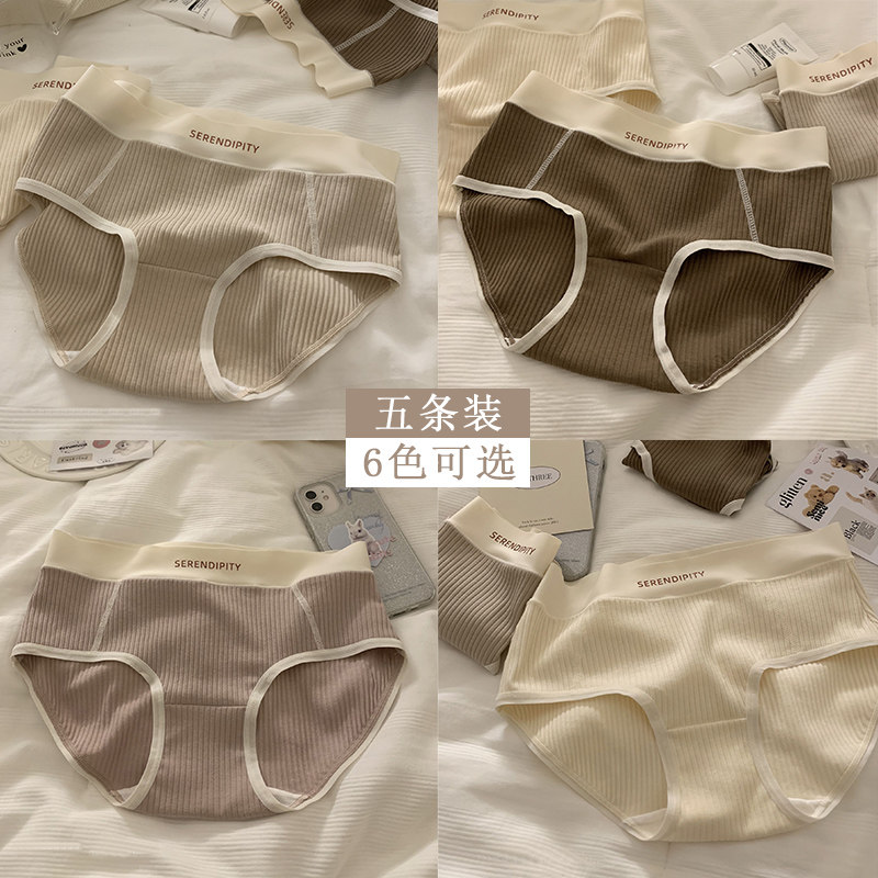 高级感撞色螺纹女士中腰内裤轻柔亲肤舒适软糯极简风少女生三角裤
