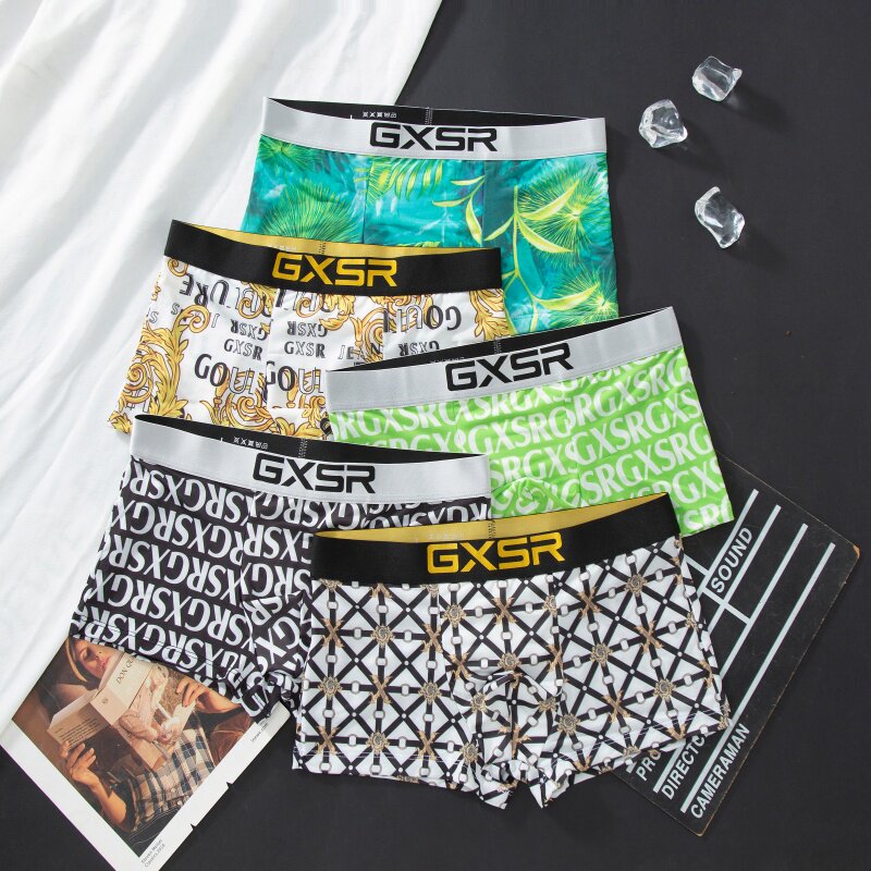 GXSR平角男士内裤透气冰丝超薄四角款时尚弹力U凸四季提臀裤衩潮