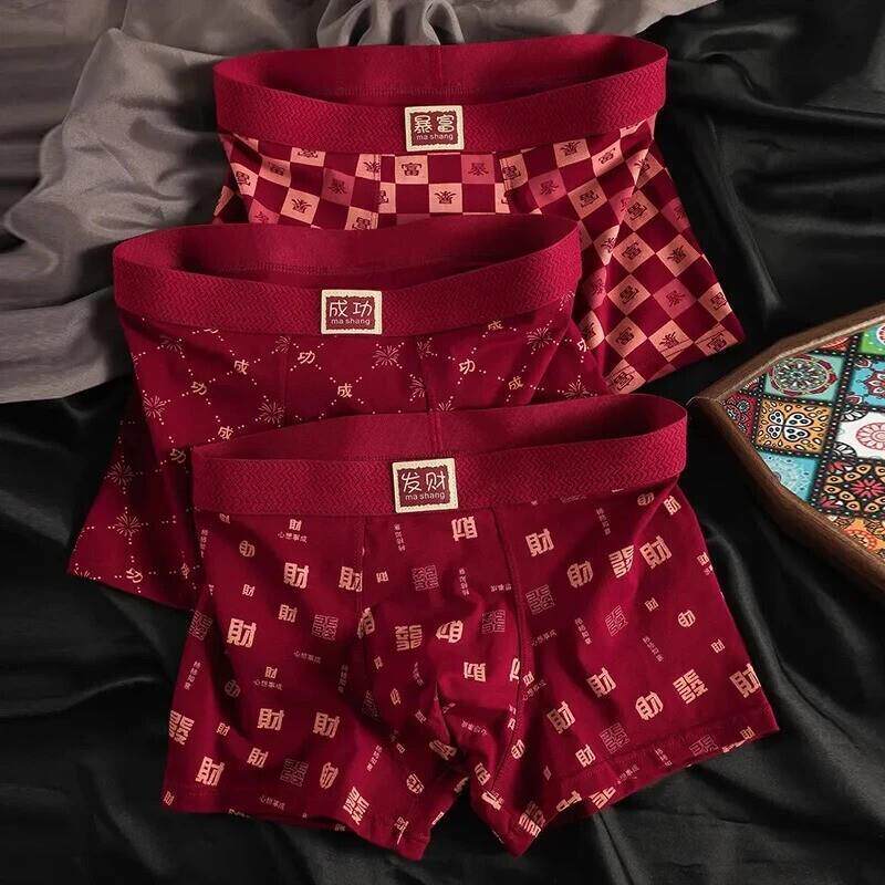 JAKE CAVO鞋服旗舰酒红色男士内裤纯棉马年四角裤本命年四角裤R