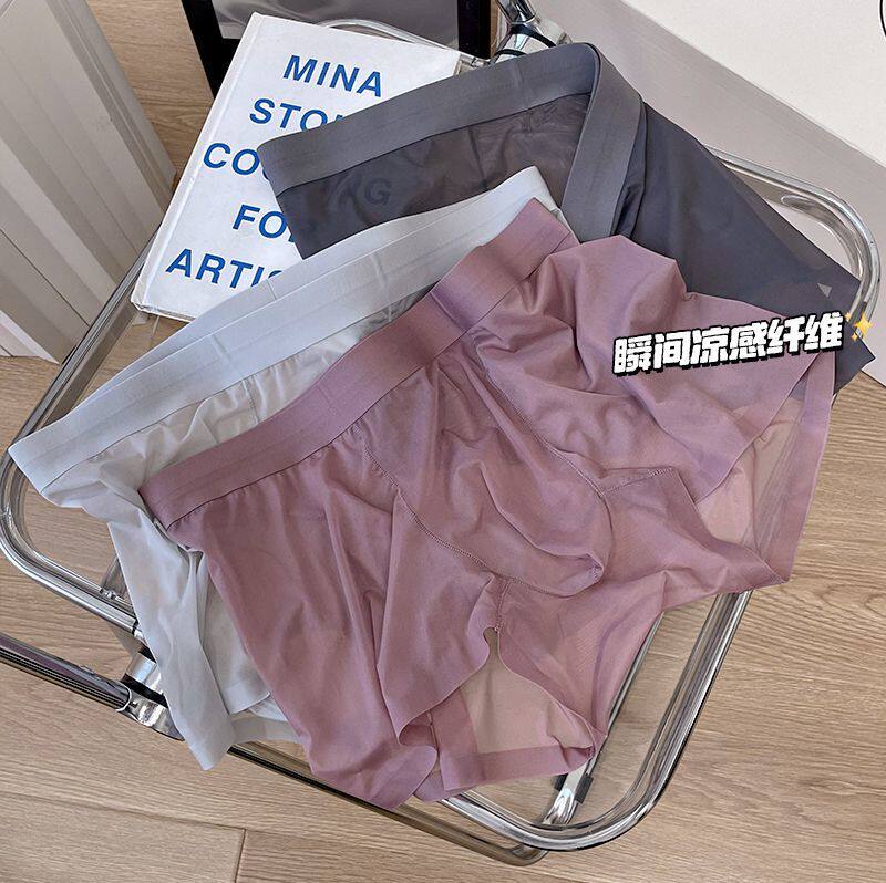 2026新款3条装夏季男士内裤锦纶冰丝冰爽透气半透明薄无痕平角裤