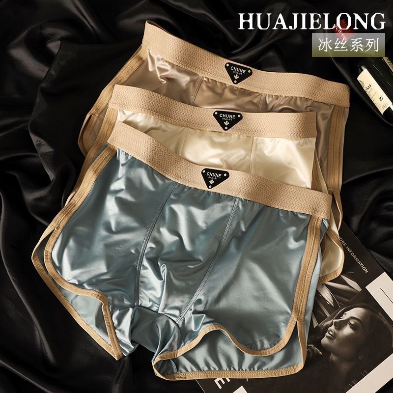 抑菌男士冰丝内裤夏季琥珀流光平角桑蚕丝底档短裤