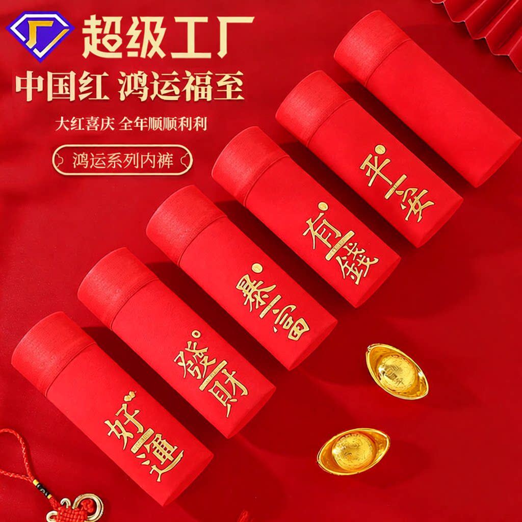 本命年属龙大红色男士内裤男纯棉透气平角短裤龙年礼物四角裤礼盒