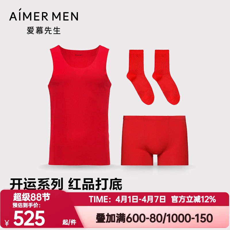 爱慕先生正品开运系列莫代尔男士本命年红色平角内裤背心袜子套装
