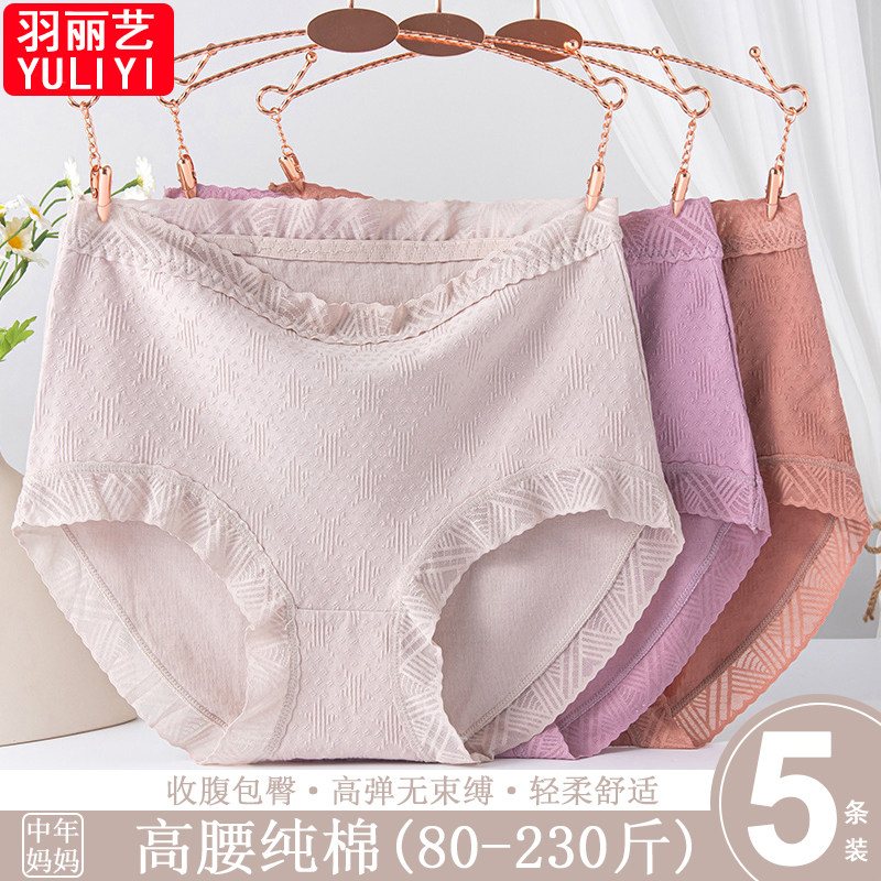 舒适纯棉高腰收腹大码女士内裤时尚高弹无痕不勒中年妈妈三角裤