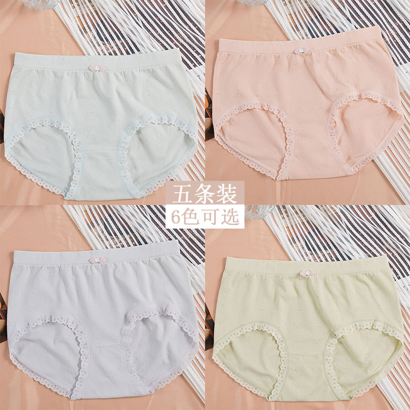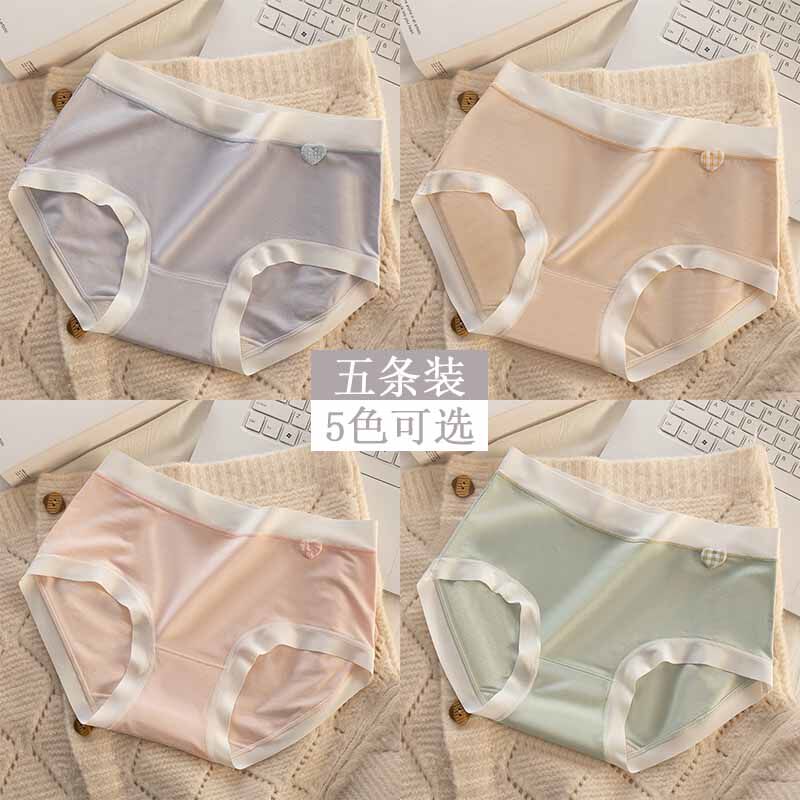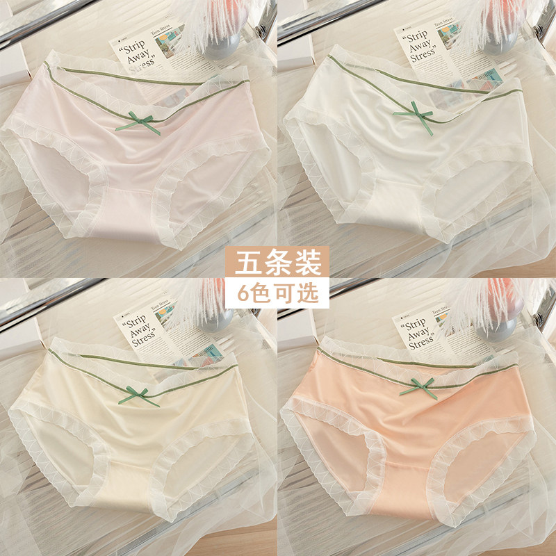 5条装 冰丝内裤女士纯棉档部无痕中腰薄透气速干蕾丝少女生三角裤