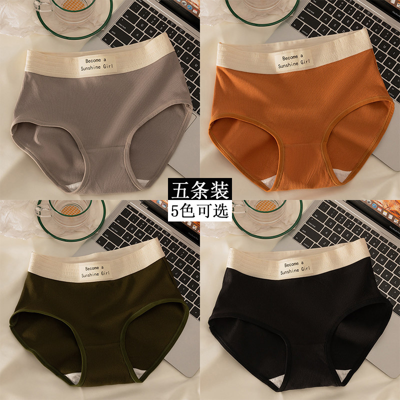 复古撞色螺纹中高腰内裤女柔软亲肤舒适透气纯棉底裆女士三角裤