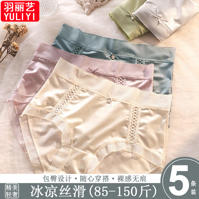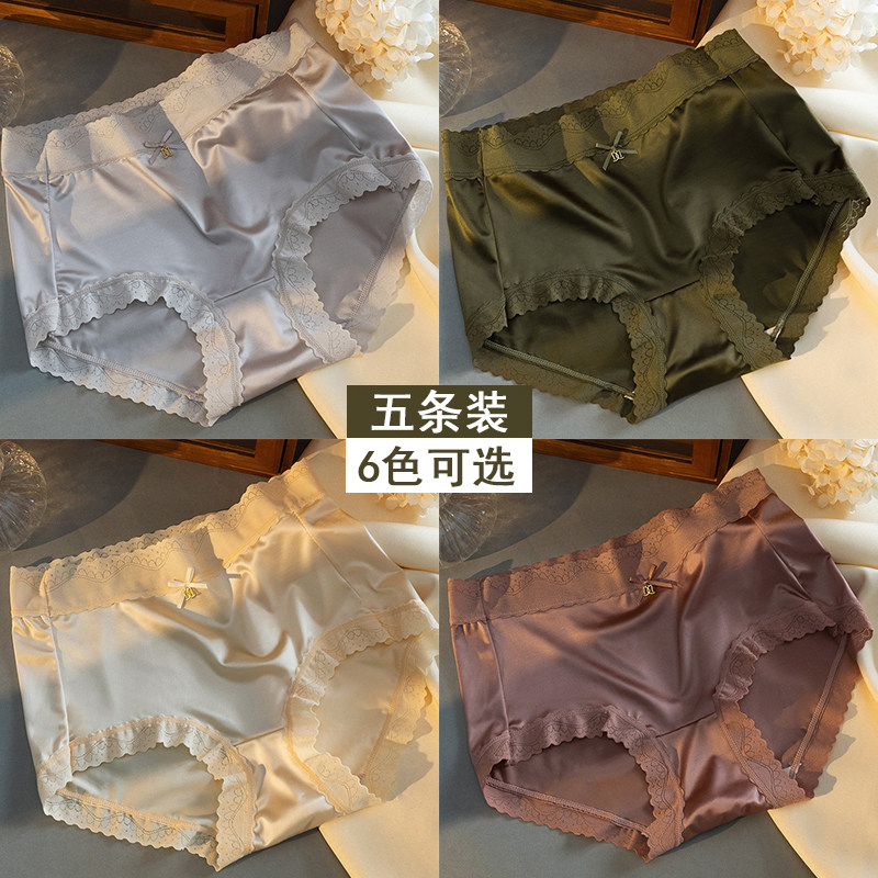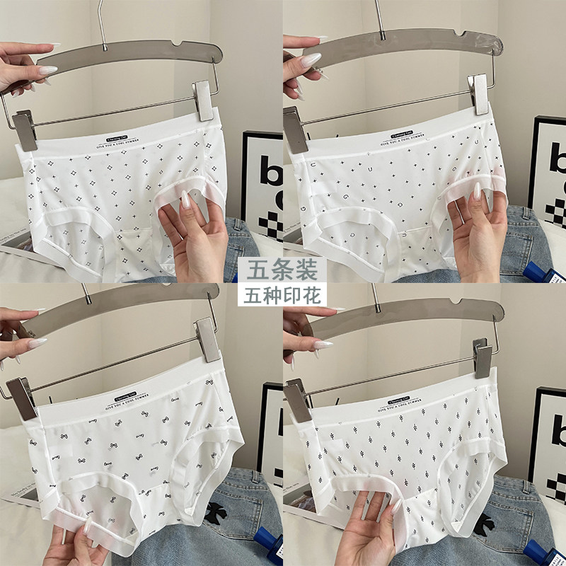 四季新款冰丝无痕内裤女中高腰冰凉丝滑缎面纯欲风少女生三角裤