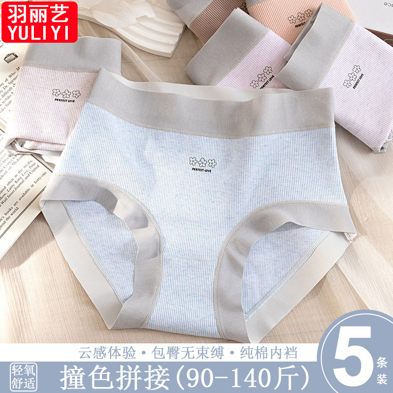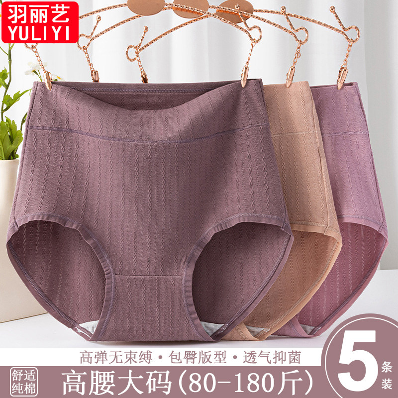 时尚简约纯棉高腰舒适内裤女大码胖mm高弹不勒吸湿排汗中年妈妈裤