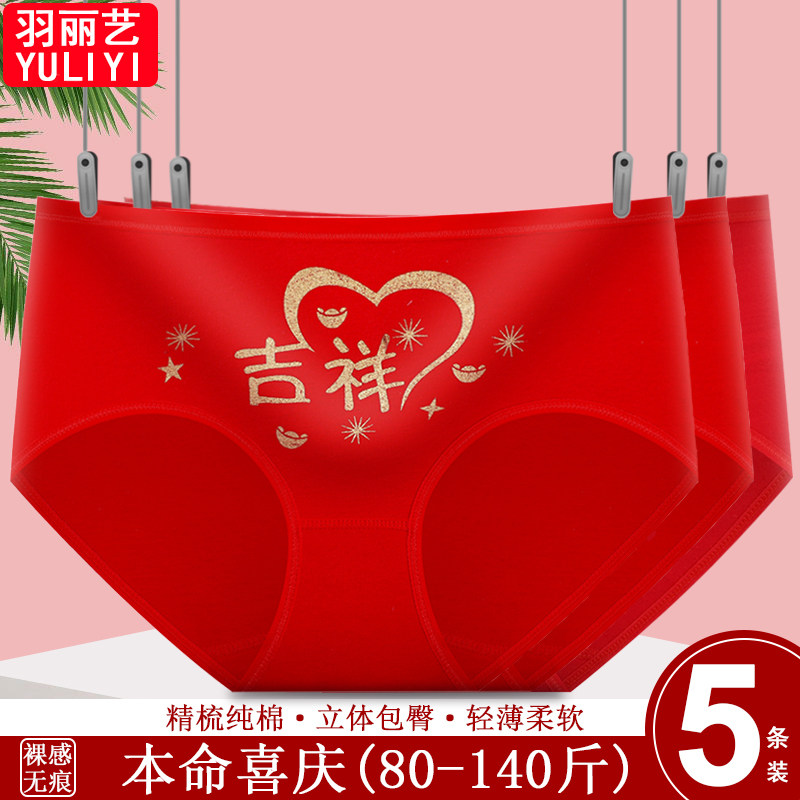 鸿运本命年中国红纯棉底裆内裤女中腰舒适包臀裸感无痕女士三角裤