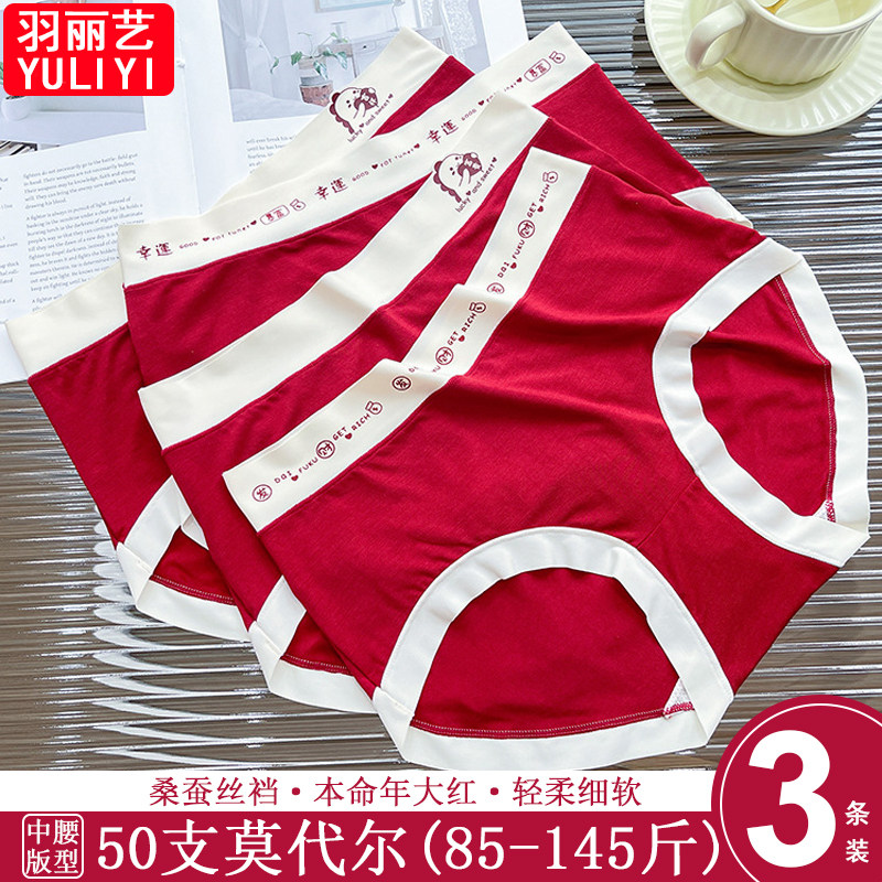 本命年新款中腰舒适包臀内裤喜庆结婚大红云感轻柔细软女士三角裤