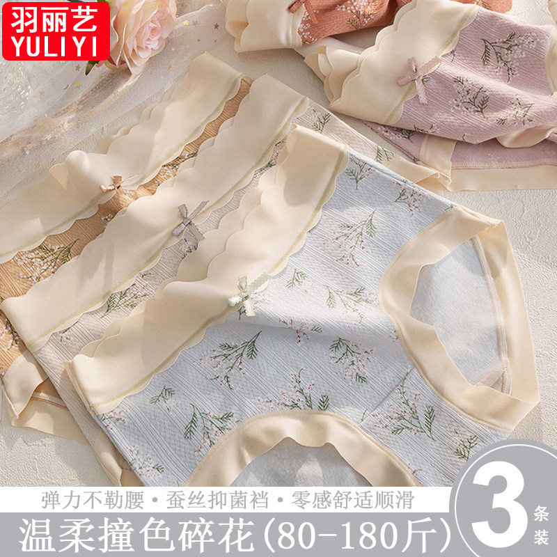 40S亲肤婴儿棉女生内裤女治愈温柔中腰纯棉亲肤无痕透气桑蚕丝裆