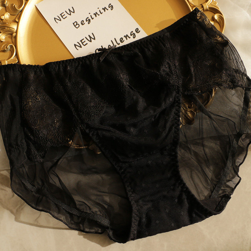 薄款性感蕾丝网纱诱惑女中高腰包臀内裤胖MM大码三角裤透气纯棉裆