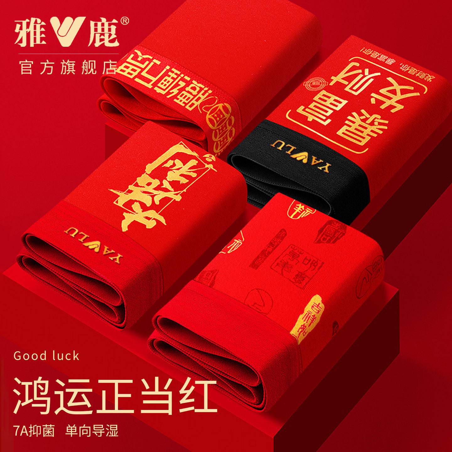 雅鹿男士内裤纯棉抗菌本命年大红色结婚礼物四角裤衩2026马年新款