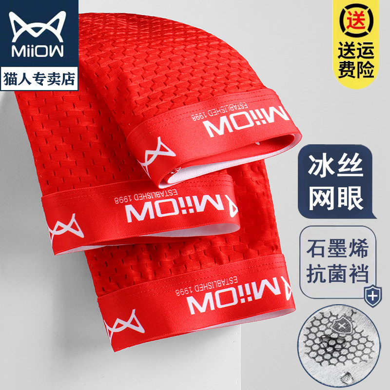 猫人本命年男士内裤男冰丝网孔夏季薄款四角裤透气短裤结婚属虎男