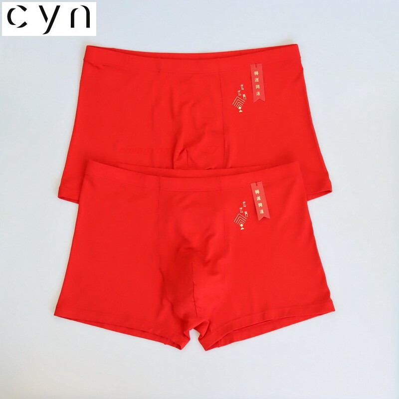 CYN 创雅诺年年有余竹纤维抗菌大红色男内裤81063D鸿运男士平角裤