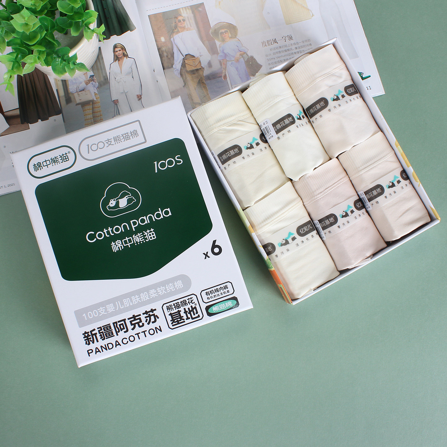 亿宠儿棉中熊猫内裤女纯棉女士有机棉三角裤洁净化柔棉全棉中腰