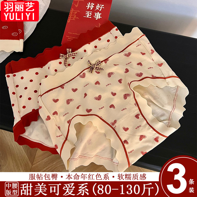 四季新款软糯质感中腰内裤女本命年满载好运高弹零束缚女士三角裤