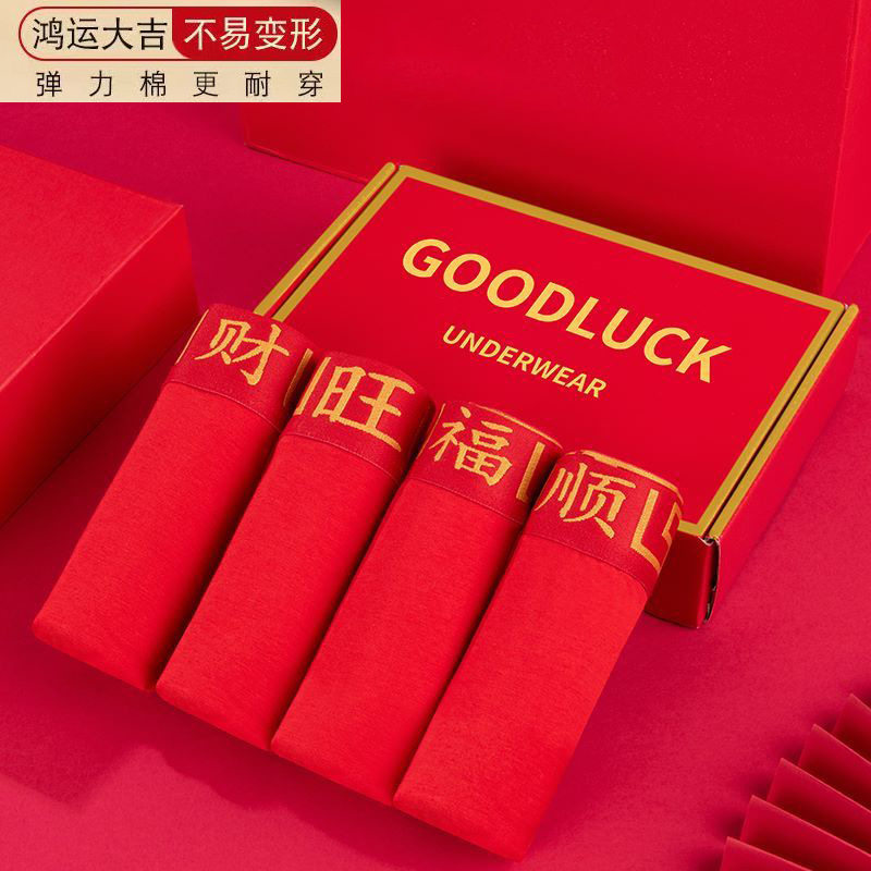 龙年本命年红内裤男中老年爸爸纯棉红色短裤男士老人大红裤头男款