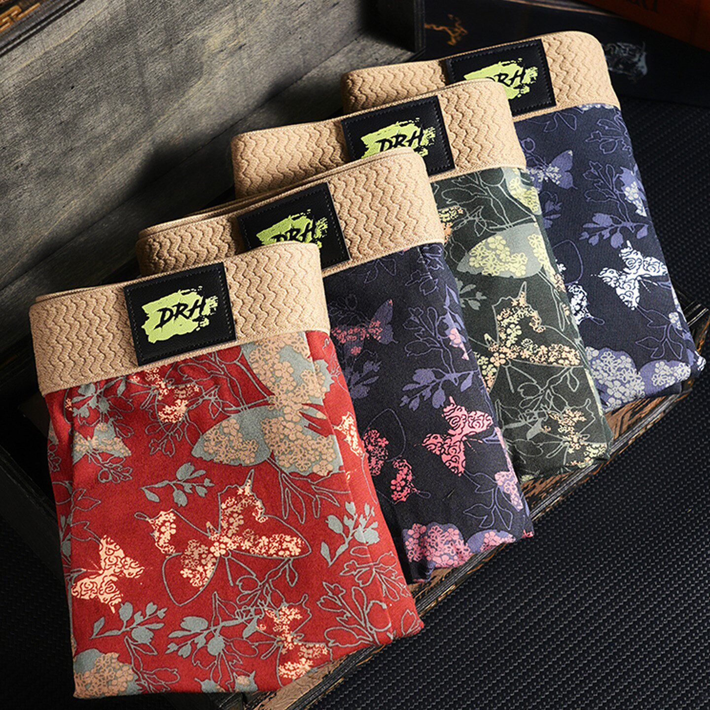 10A抑菌潮流内裤男纯棉平角底裤衩男生亲肤透气蝴蝶花印四角裤头
