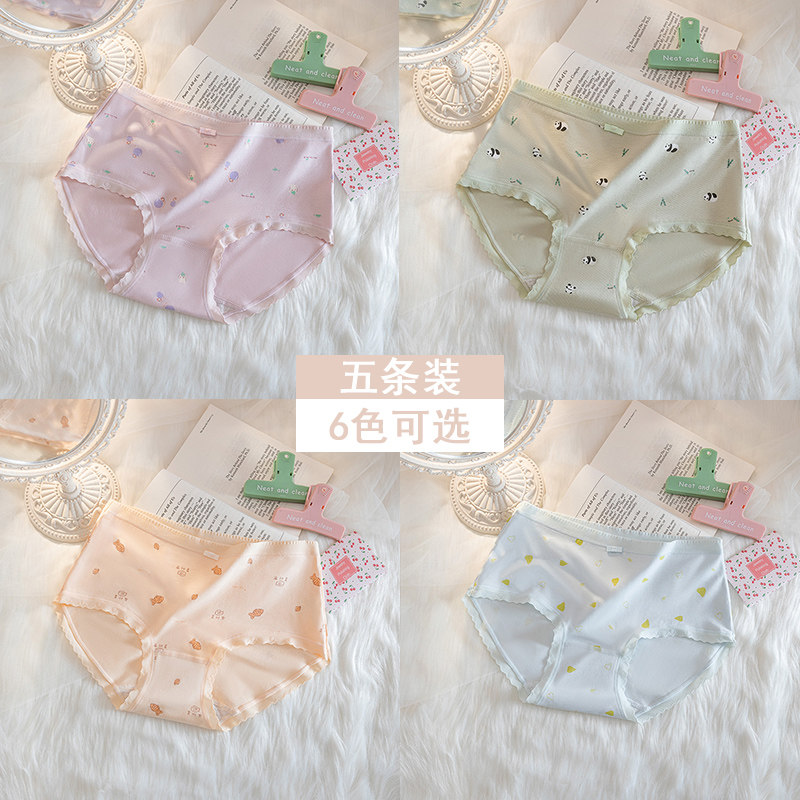 新品蕾丝边可爱印花中腰内裤女裸感舒适软糯淡雅色系少女心三角裤
