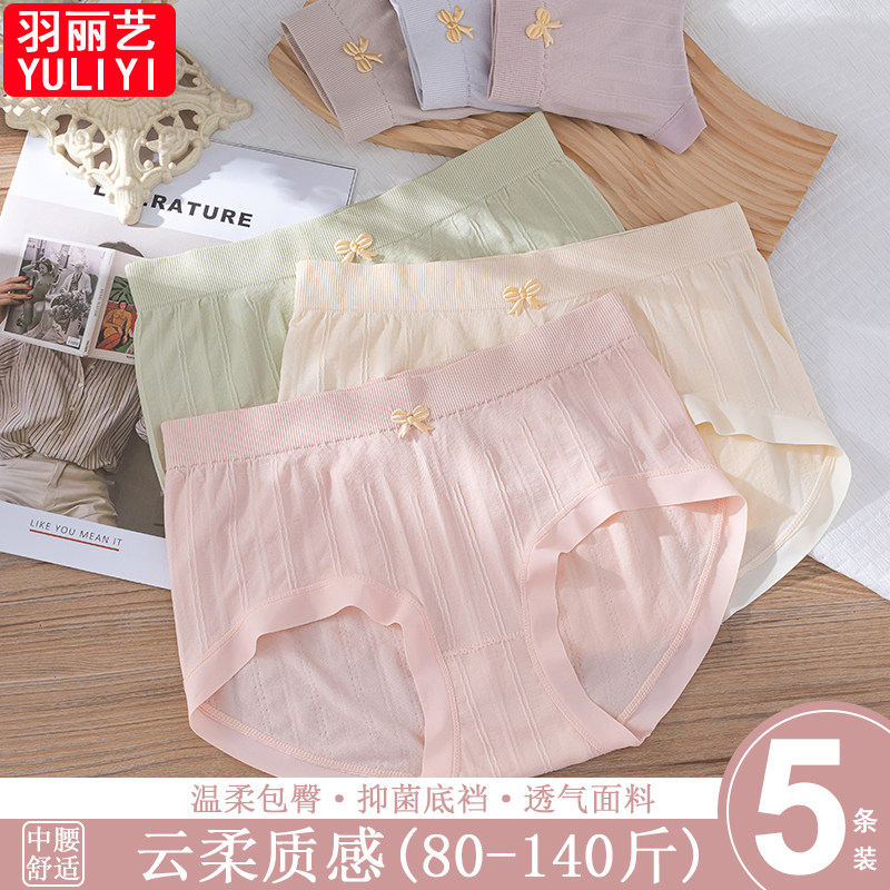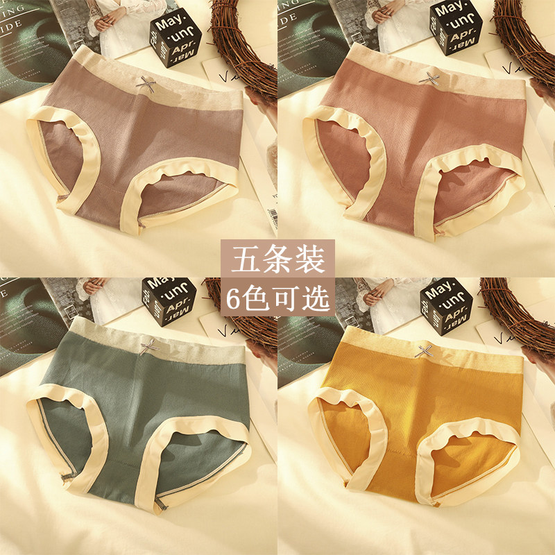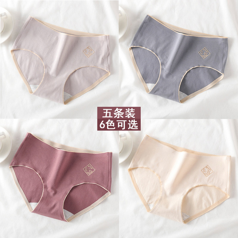 5条装 冰丝内裤女性感中腰无痕女士一片式弹力大码隐形三角裤纯色