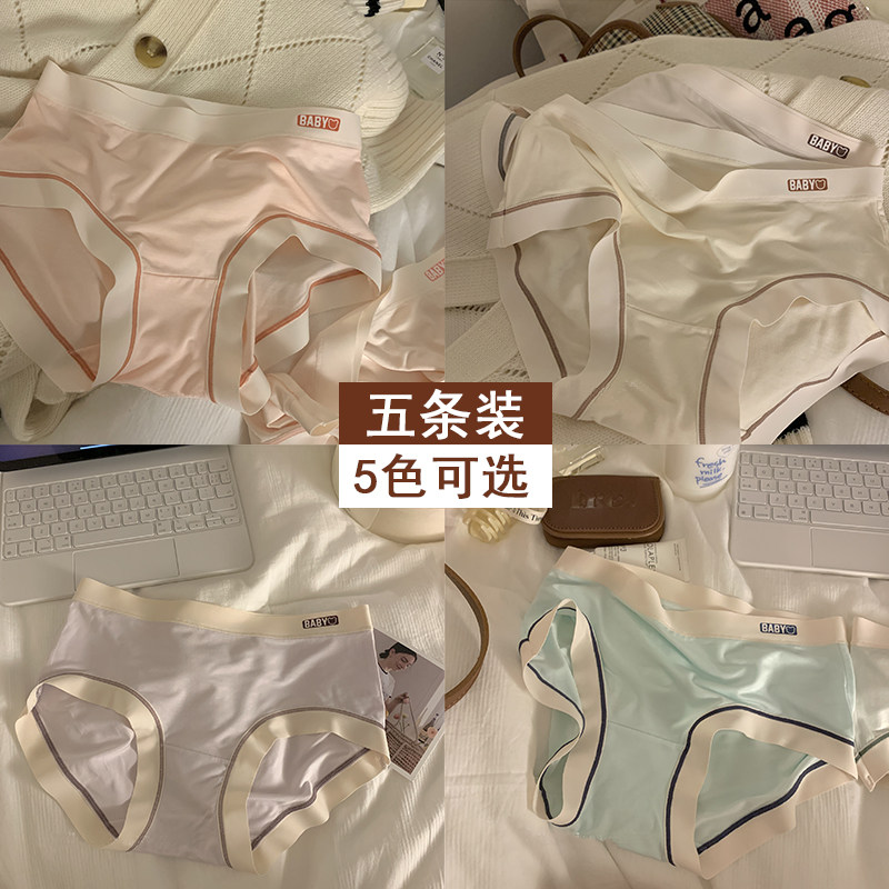 新款高颜值简约字母设计内裤女四季裸感亲肤撞色奶油少女生三角裤