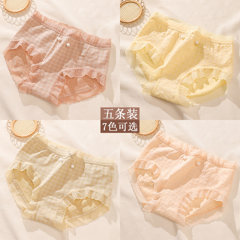 N568舒适女士低腰蕾丝网纱面料格子图案甜美可爱女生内裤M/L/XL