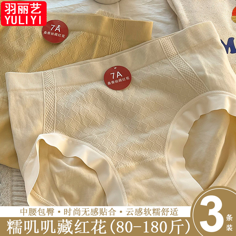 轻柔透气亲肤裸感中腰内裤女时尚无感贴合蚕丝藏红花裆女士三角裤